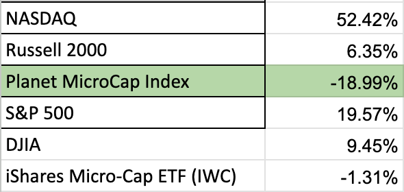 Planet MicroCap Index Chart: