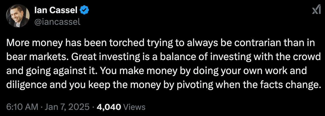 Quick summary: Andrew reflects on two conflicting mistakes in their 2024 investment strategy—holding onto positions too long when the thesis is breaking and selling too early when a thesis is still valid—while pondering how to balance long-term patience with avoiding opportunity cost in their investing approach.