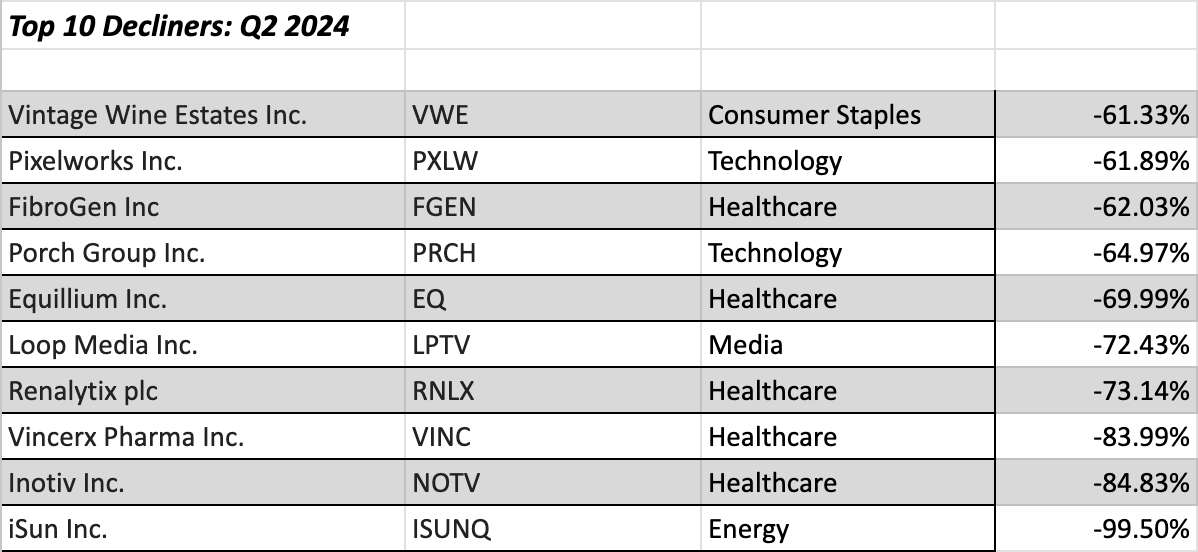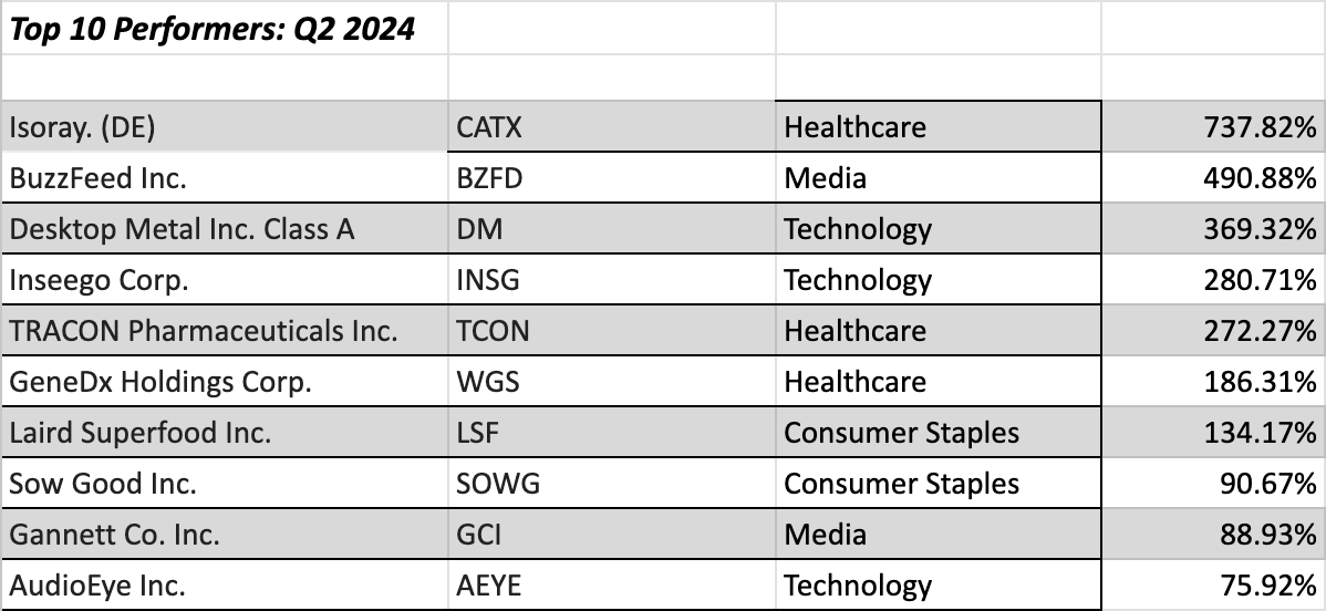 Planet MicroCap Index (MCRI™) Q2 2024 Performance, Sector Performance for Q2 2024 and Top 10 Performers/Decliners for Q2 2024